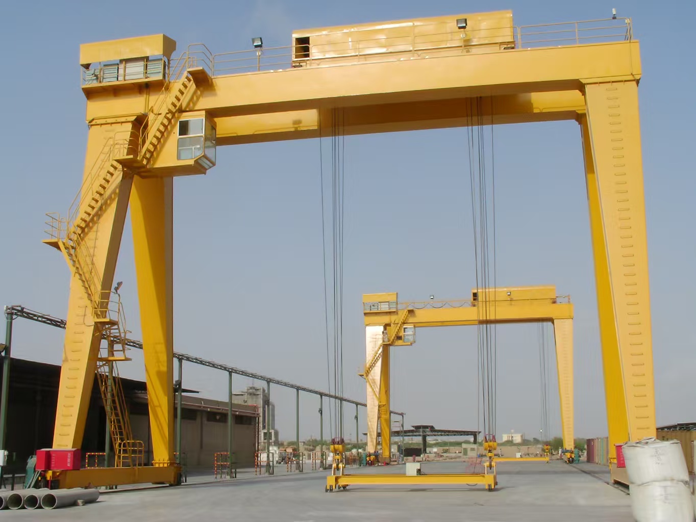 Two rigid legs + ground rail travel, high stability. Capacity: 5–500+ tons, span: 10–50+ meters. Used in ports, shipyards, steel mills, and other heavy‑duty applications.